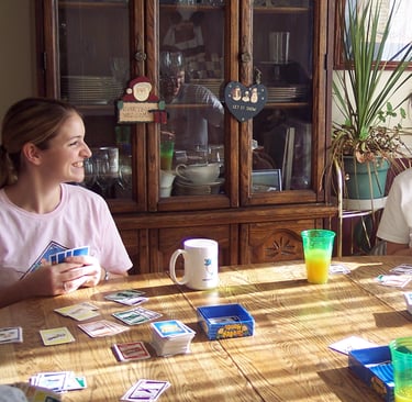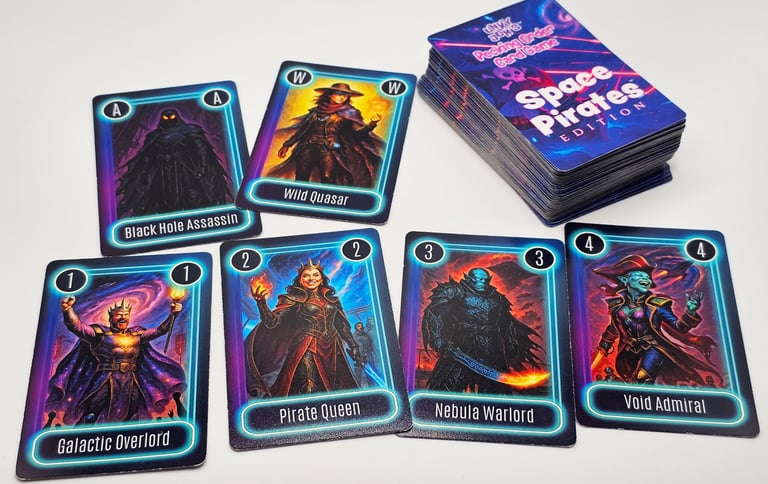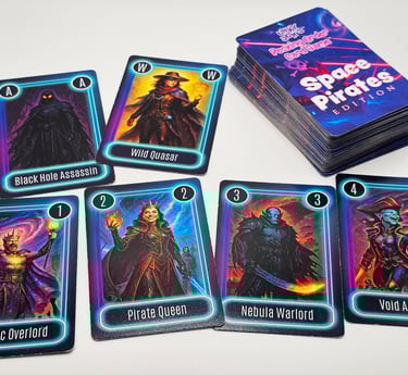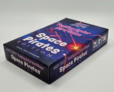 We love both creating games and playing them! I developed my first card game, Greedy Hands, back in the late 90's and then got it printed in 2004. I've been working on a few more games over the years, but haven't been able to print them in high volume yet. My latest is Space Pirates! Check it out below. More games are on their way!