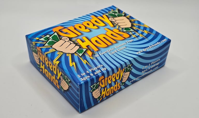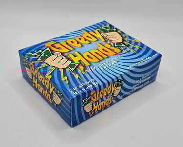 Greedy Hands is the first game that I created back in 2004. It's currently out of print but I'm working on getting it published on the Game Crafter's website so you can order one-off copies. My next step after that is to do a larger print run to make it cheaper to buy. You can learn more about the game on it's own website: www.greedyhands.com