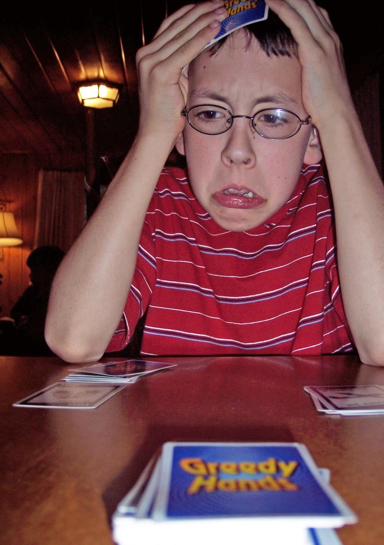 Some pictures of playing Greedy Hands with the family in the past.